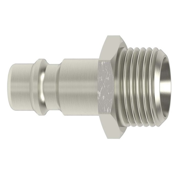 Přesto, že tyto vsuvky nespadají do systému Clean Conect jsou plně kompatibilní s nerezovou sérií ESE Dn 7,2.Niklovaná mosaz rychlospojka Dn 7,2 s vnějším závitem.Univerzální rychlospojky v provedení z čisté nebo poniklované mosazi MS 58.Speciální kontura trnu pro lepší dosednutí hadice a snazší montáž.Materiál: připojovací části, zajišťovací prstýnek, ventilové tělo, ventil z mosazi MS 58, pružiny, rozpěrný kroužek, koule z nerezové oceli, těsnění perbunan.Určeno pro stlačený vzduch v průmyslu, řemeslnictví. Rovněž možno použít pro vodu a jiná média.
