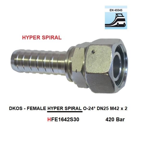 Lisovací nátrubek DKOS 24° pro hydraulické hadice, metrický závit, těžká řada. Vnější kužel 24° s O-kroužkem. Proti strana – koncovky CES. Pro výběr koncovky k patřičnému průměru hadice slouží údaj „Určeno na hadici [Inch]“.