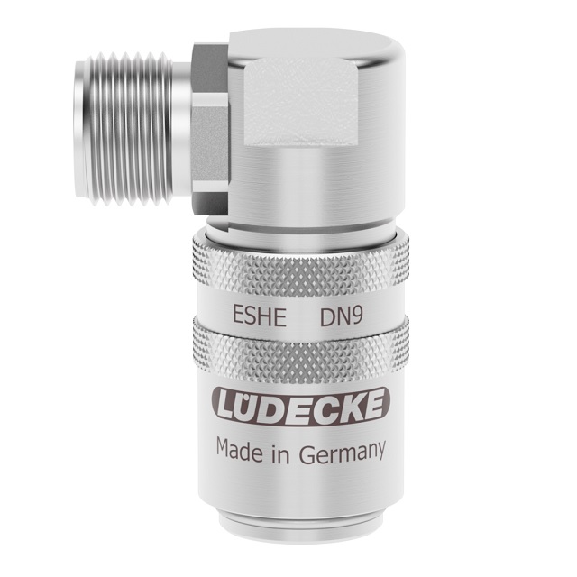 Rychlospojky určené pro plastikářské stroje a formy s volným průchodem.Pro aplikace udržení stále teploty horkou a studenou vodou, popřípadě temperovacím olejem.Rychlospojky nerezové série jsou určeny pro trny a vsuvky stejné série ESHE s velikostí čepu trnu 13 mm, kompatibilní se systémem Hasco Z 8. Vnitřní kužel DIN 3863.Nerezová rychlospojka Plastik Dn 9 s vnějším úhlovým závitem 90° s/bez ventilu.