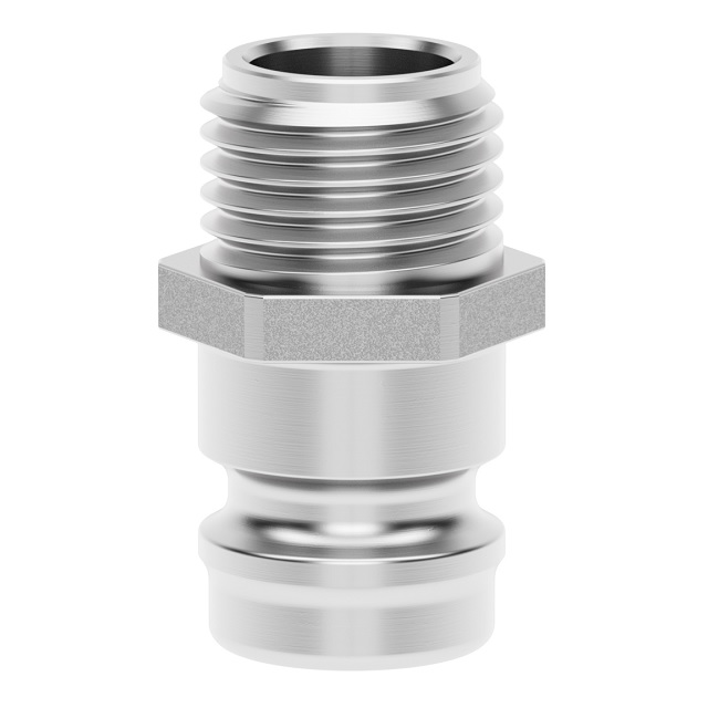 Rychlospojky určené pro plastikářské stroje a formy s volným průchodem.Pro aplikace udržení stále teploty horkou a studenou vodou, popřípadě temperovacím olejem.Rychlospojky nerezové série jsou určeny pro trny a vsuvky stejné série ESHE s velikostí čepu trnu 13 mm, kompatibilní se systémem Hasco Z 8. Vnitřní kužel DIN 3863.Nerezová vsuvka Dn 9 s přímým vnějším závitem, bez ventilu.