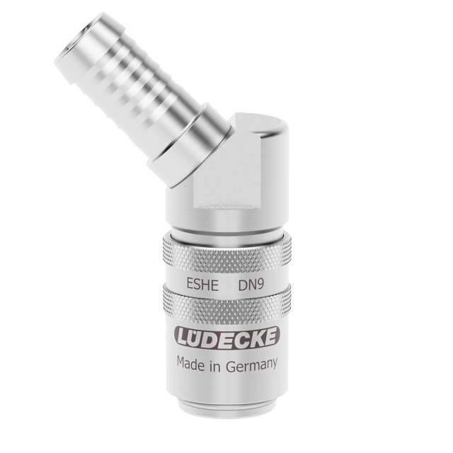 Nerezová rychlospojka DN 9 s úhlovým trnem 45° s/bez ventilu pro standardní hadice