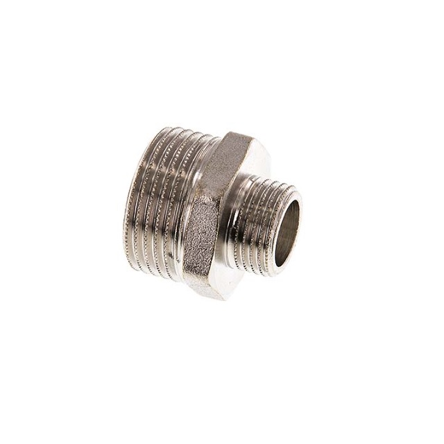 Niklovaná mosaz, redukce i spojka s vnějšími závity ISO 228/DIN 405