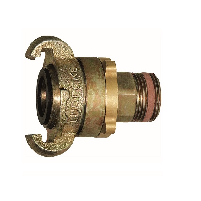 Vysoce kvalitní bezpečnostní šroubovací spojky, čelist z temperované litiny s bezpečnostními zářezy, soustružená ocel se speciální konturou, pozinkovaná a žlutě pasivovaná (bez chromu VI), s bezpečnostním dvojitým jazýčkem (rozteč 42 mm).Pro absolutně bezpečný přívod stlačeného vzduchu ve stavebnictví a průmyslu.Zesílený ochranný kroužek závitu a nový těsnicí kroužek, držák zabudovaný do těla spojky.S gumovým kroužkem odolným proti oleji, na vyžádání s pryžovým kroužkem odolným proti páře z TFEP (do +200°C).Zaručená 100% těsnost, snižuje nákladnou spotřebu vzduchu.Spojky jsou lehce spojitelné, zajištění proti náhodnému otevření se provádí až po spojení dotažením matice ve spodní části.Spojením dvou hadic nebo potrubí v provozu těmito spojkami je chráněné proti šlápnutí, pádu apod., rozpojení je možné jenom uvolněním matic.