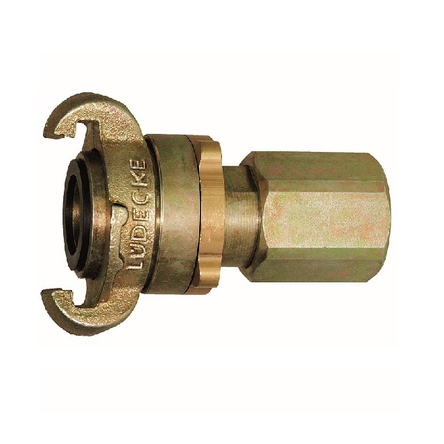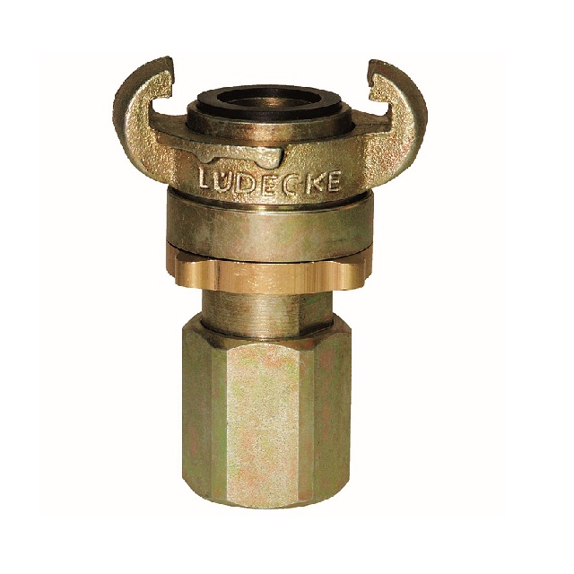 Vysoce kvalitní bezpečnostní šroubovací spojky, čelist z temperované litiny s bezpečnostními zářezy, soustružená ocel se speciální konturou, pozinkovaná a žlutě pasivovaná (bez chromu VI), s bezpečnostním dvojitým jazýčkem (rozteč 42 mm).Pro absolutně bezpečný přívod stlačeného vzduchu ve stavebnictví a průmyslu.Zesílený ochranný kroužek závitu a nový těsnicí kroužek, držák zabudovaný do těla spojky.S gumovým kroužkem odolným proti oleji, na vyžádání s pryžovým kroužkem odolným proti páře z TFEP (do +200°C).Zaručená 100% těsnost, snižuje nákladnou spotřebu vzduchu.Spojky jsou lehce spojitelné, zajištění proti náhodnému otevření se provádí až po spojení dotažením matice ve spodní části.Spojením dvou hadic nebo potrubí v provozu těmito spojkami je chráněné proti šlápnutí, pádu apod., rozpojení je možné jenom uvolněním matic.