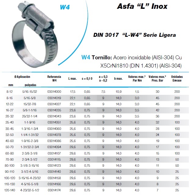 Nerezová hadicová šneková šroubovací spona je určená pro rychlé a jednoduché upínání tlakových hadic.Jsou určené i pro venkovní použití, kde je výhodnější použít  nerezovou sponu s větší upínací silou a delší životností při opakování utahování a povolování místa spoje.Hlava šroubu 7 mm – šestihran.