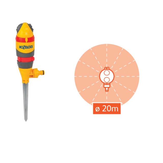 Kulatý kovový postřikovač pro 314m², 2 postřiky – vodními kruhy a částečnými kruhy do průměru 20 m.Vysoce výkonný postřikovač dosáhne maximálního pokrytí plochy 314m²Ultra rovnoměrné pokrytí díky motoru poháněnému vodou a 2 vzorům postřiku.Konstrukce hrotu zajišťuje během používání odolnost a bezpečné uchycení na trávníku nebo okraji.Speciálně navrženo tak, aby poskytovalo 100% rovnoměrné pokrytí vodou bez ohledu na tlak vody (1-10 barů).Postřikovač je namontován na pevném kovovém hrotu, který poskytuje stabilitu při zatlačení na trávník nebo okraj. Vyznačují se velmi spolehlivým motorem poháněným vodou, který pracuje při každém tlaku.Může zalévat celý kruh nebo jeho část – nastavení je snadné, jednoduše zasuňte červené nastavovací kroužky. K dispozici jsou dva vzory postřiku a 5 trysek.