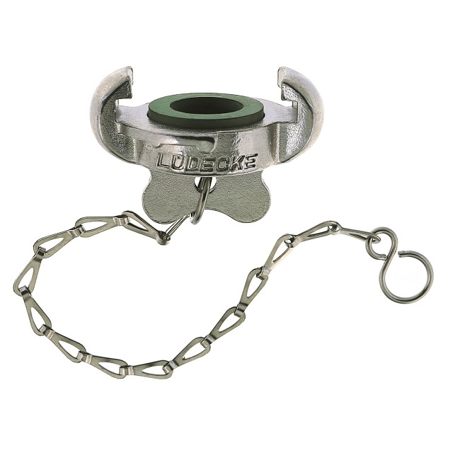 Vysoce kvalitní zubové spojky z nerezové oceli 1.4401 (odolné proti rzi a kyselinám) s bezpečnostními zářezy.Pro agresivní kapaliny (v závislosti na směsi / koncentraci) v konstrukci nádrže a nádoby, chemické nebo petrochemický průmysl atd.Pro aplikace v potravinářství a pitné vodě použijte gumový kroužek typu GPOR těsnění z EPDM (podle potravinářského průmyslu).S těsnicím kroužkem z FKM (kyselinovzdorný).Otočné sedlo těsnění umožnuje zajistit 100% těsnost.Drážkovaná kontura trnu zajišťuje perfektní usazení a utěsnění v hadici.Materiály: Pásek, konektor: Nerezová ocel 1.4401, Závitová závlačka: mosaz MS 58 chromovaná, Řetěz: nerezová ocel 1.4301,Těsnění: FKM