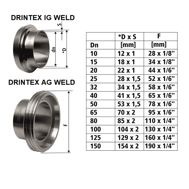 Adekvátní matice u „DRINTEX MATKA“ výběr za DN.Velikost modulu – závit u „DRINTEX MATKA“