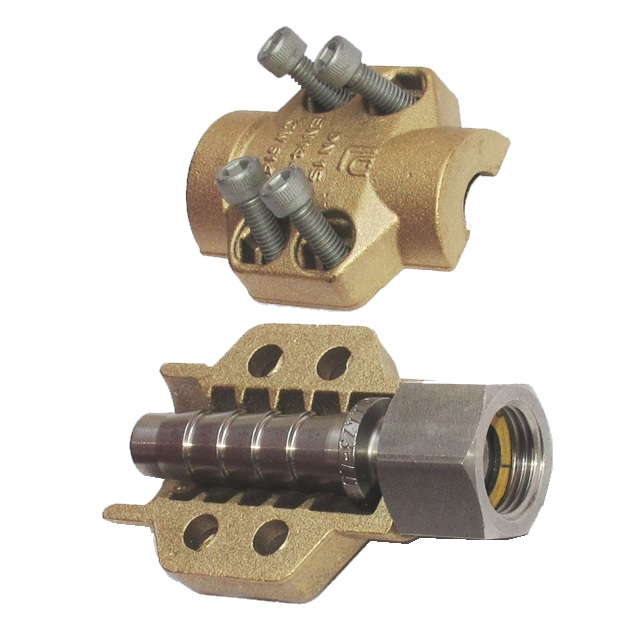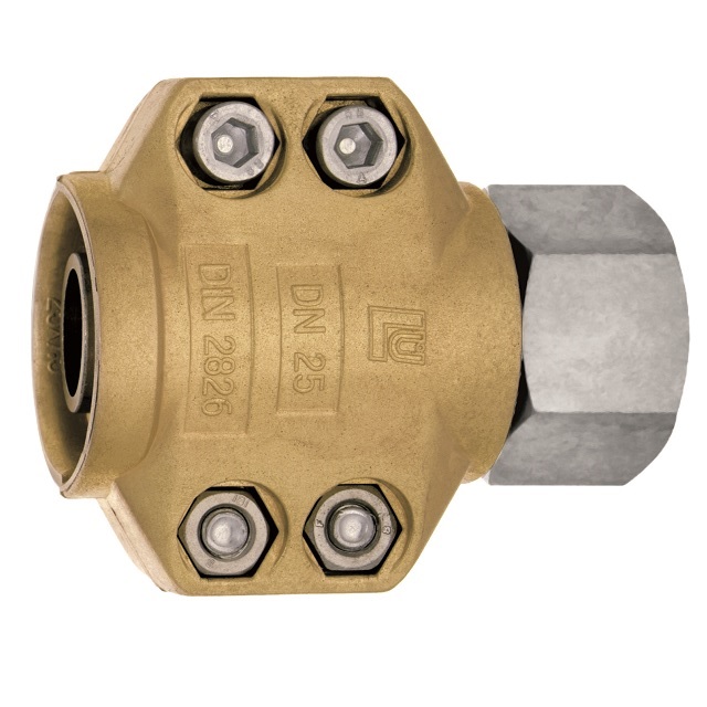 Šroubení s vnitřním závitem je dvojdílné, otočné, převlečná matice s přímým plochým čelem a těsnícím kroužkem Frenzelit Novatec Speciál.Těžké, velmi robustní šroubení s vnitřním závitem z nerezu a mosazných hadicových svorek.Pro použití na sytou páru do 210°C, eventuelně horkou vodu +120°C do pracovního tlaku 18 bar.Všechny výrobky „Kombiloc“ mají vždy ocelové, pozinkované šrouby a matice pro utažení objímek, jsou součástí výrobku.