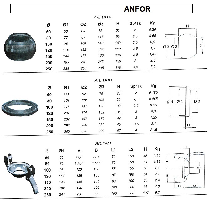 ANFOR jsou koncovky ze systému ITAL, jsou oproti Perrotu robustnějšího provedení s jinými rozměry. Jde o rychlospojkový systém fungujcí na principu kardanového spoje, mají delší životnost a snesou vysokou mechanickou zátěž.Nejčastější použití v zemědělství, hasící technice, vodohospodářství, při práci s odpady a kaly, přepravě sypkých hmot.Materiály: z pozinkované oceli, černé oceli (ke sváření) nebo nerezu.