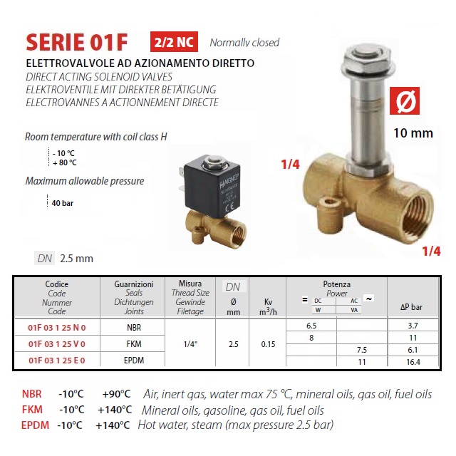 NC-normálně zavřený, prům. 10 mm, 40 bar /300L/hod.