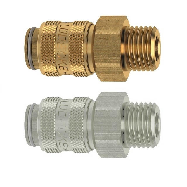 Univerzální rychlospojky MINI DN 5 (menší verze standard) jsou určeny pro stlačený vzduch. Vyznačují se velkým průtokem při malých vnějších rozměrech a jednoduchou manipulaci.Několik oblastí použití, zejména pro kapalná média ve stavebnictví, řídicí technologii, chlazení rozvaděčů atd.Dvojité vypnutí, aby při odpojování nedošlo k úniku média. Dvojité uzavírací zátky však nemohou spojit se standardními spojkami DN 5.Materiály: Těleso, objímka, tělo ventilu, ventil – Mosaz MS 58. Pružiny, pojistný kroužek – Nerezová ocel 1.4310, Kuličky – Nerezová ocel 1.3541.