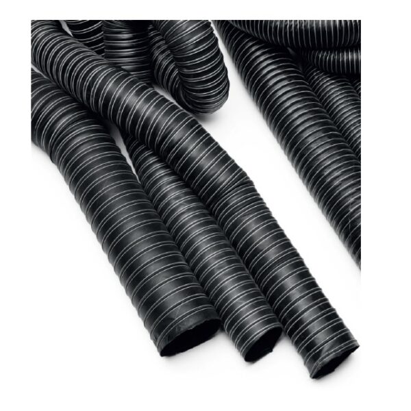 Odsávání vzduchu a par při vyšších teplotách – sklářský, hutní, plastikářský, papírenský a keramický průmysl atd. Hadice je velmi lehká, flexibilní, vynikající odolnost proti stárnutí.Dvouvrstvá skelná tkanina impregnovaná Neoprénem (CR) v černé barvy s ocelovým drátem. Tyto hadice se zvlášť doporučuje na vedení plynu na střední teploty, odsávání výfukových plynů motoru, dým, elektronické jednotky chlazení a svařování.Hadice se nezkracuje, dodává se pouze jako balení 4 m, Cena bez DPH / Mj je cena za 1 metr.