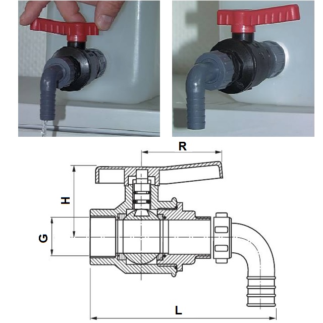 Polypropylénový kohout s páčkou PN 4, kanystrový do +80°C
